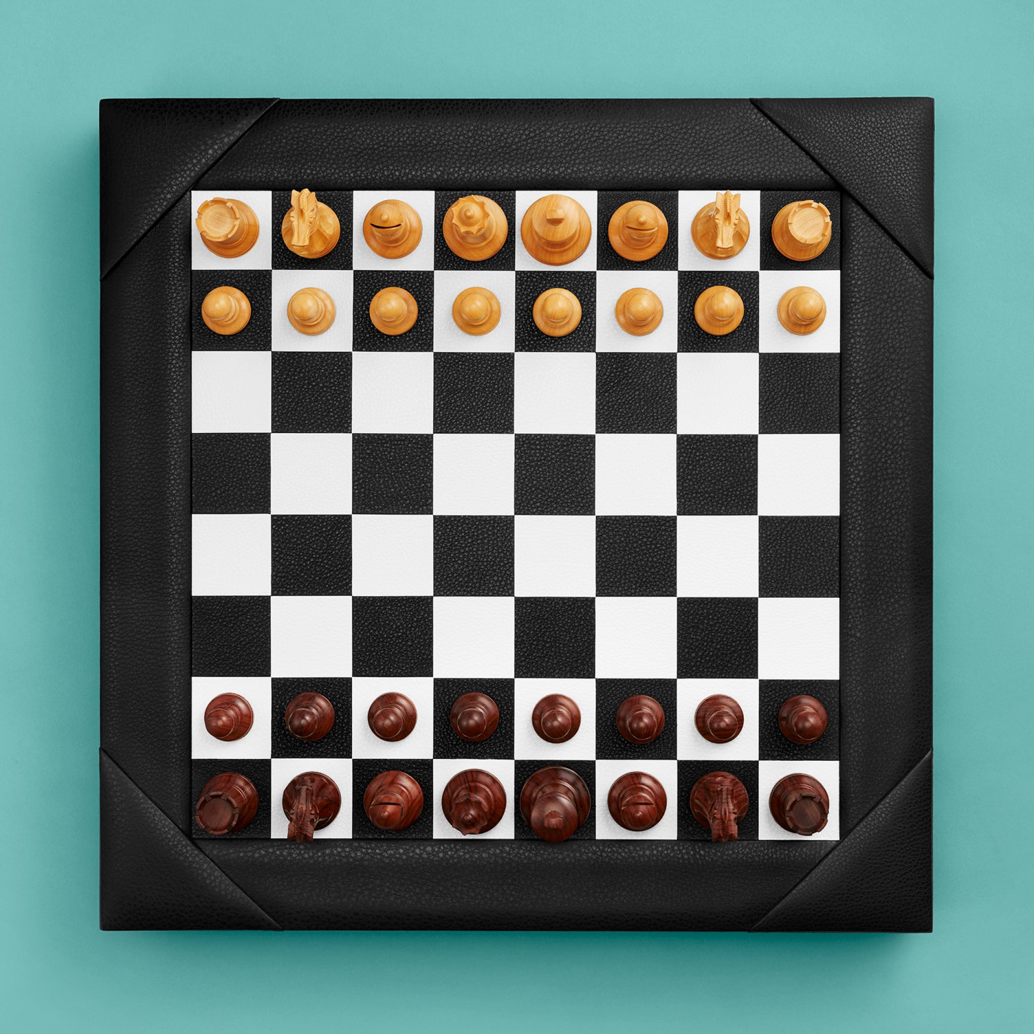 Full leather-wrapped chess board with contrasting stitching for a sophisticated look